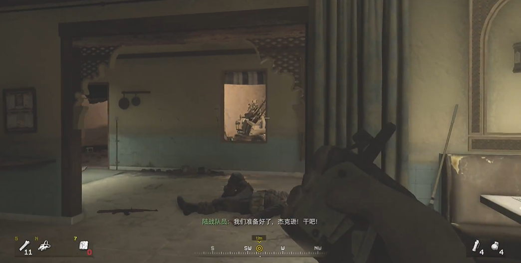 在前往防空炮的路上可能会遇到不少敌人,建议优先解决那些拿RPG的家伙。他们威胁最大,一发就能让你重来。队友的火力支援很给力,可以多利用他们吸引敌人注意力。记得随时注意小地图上的红点,提前预判敌人位置会让你轻松很多。