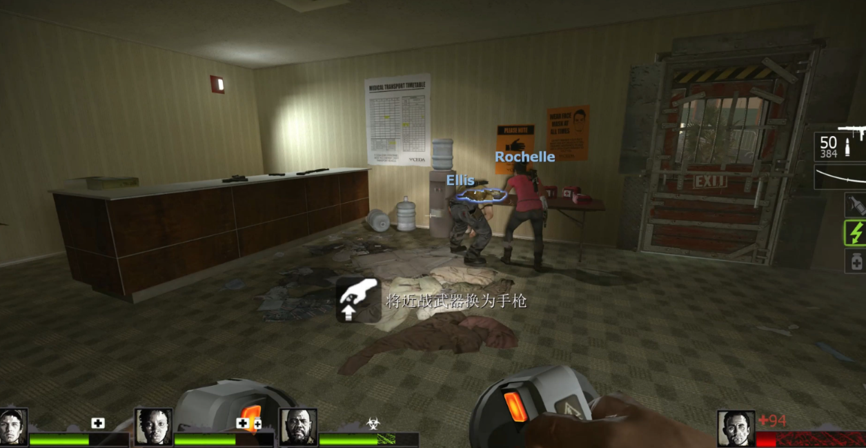 最终抵达大厅时需要清剿所有僵尸,正对面的安全门就是逃生出口。该章节可能出现Tank,但概率较低,若遭遇应保持全员使用手枪并远离悬崖边缘。虽然存在跳窗捷径可快速下楼,但操作风险极高,非速通玩家不建议尝试。消防斧的高伤害和范围优势在本关卡尤为实用,能有效应对狭窄空间的尸潮。