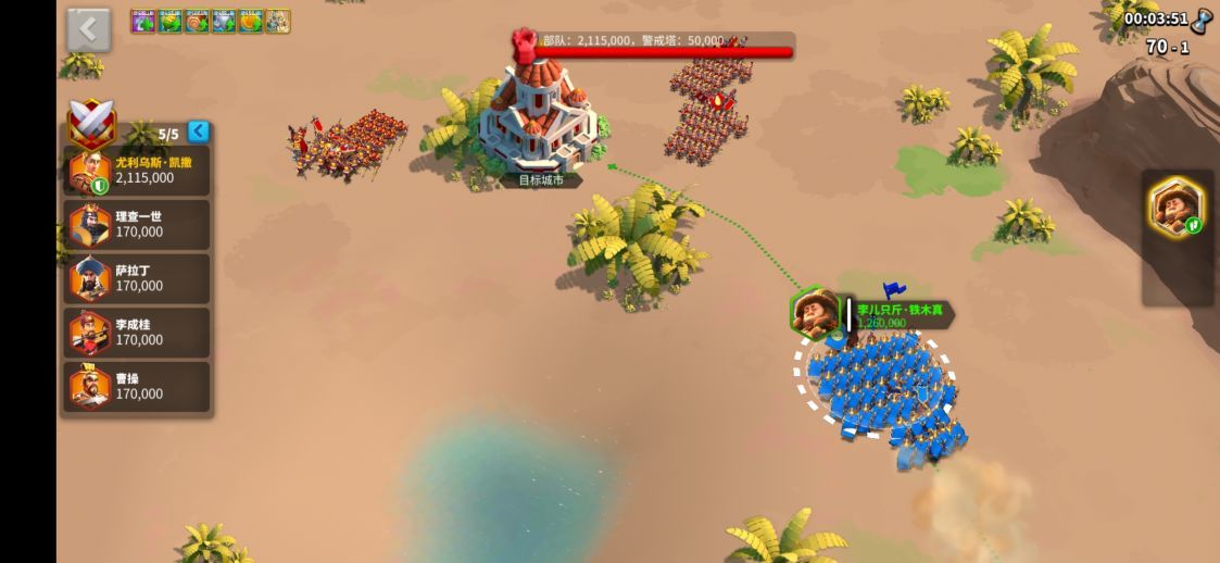 混编部队比单一高阶兵种更实用,比如搭配t4、t3、t2不同等级的士兵。主力队伍推荐使用觉醒孙武搭配贞德,这个组合有不错的生存和回复能力。战斗中如果发现打不过,可以回到上一关重新调整,或者用系统提供的招募单位来扛伤害,为主力争取回血时间。记得随时观察战场情况,灵活调整战术。
