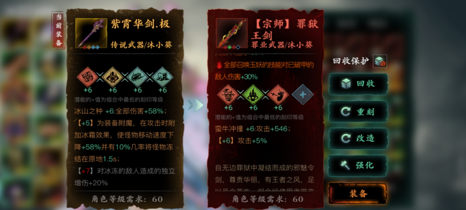 装备刻印方面优先选五圣祝福和冰山之种,武器洗出红黄蓝蓝的刻印槽最理想。刷装备时注意保留带破甲值和暴击加成的词条,这些属性对无锋特别有用。60级后记得去修罗塔拿传说武器蓝图,虽然挑战有点难度,但拿到后输出会提升一个档次。平时刷本可以带银月幻体心法,开局抢先手特别实用,打精英怪时记得先破甲再输出。