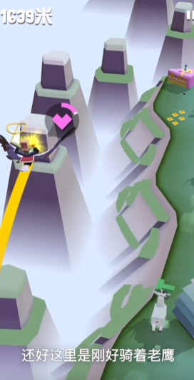 解锁老鹰场景后,地图边缘会出现有规律的灌木丛,它们指向的方向就是老鹰的藏身之处。咱们只要顺着灌木方向大胆跳出去,就能发现老鹰的踪迹。如果想抓稀有的罗宾汉鹰,需要用老鹰或羊驼飞到最远的山峰上,那里是它的固定刷新点。