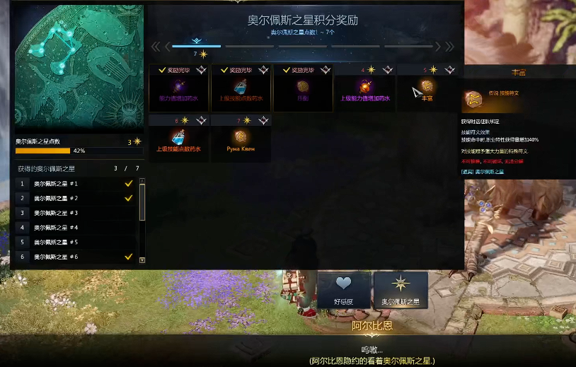 奥尔佩斯之星是失落的方舟中重要的收集要素,共有6颗,需在完成帕布尼卡大陆主线后解锁。第一颗通过完成帕布尼卡主线及后续紫色任务直接获取,该任务链与尼亚村NPC相关,需注意部分环节对角色属性有要求,例如知性与亲切需达到330点才能接取特定任务。
