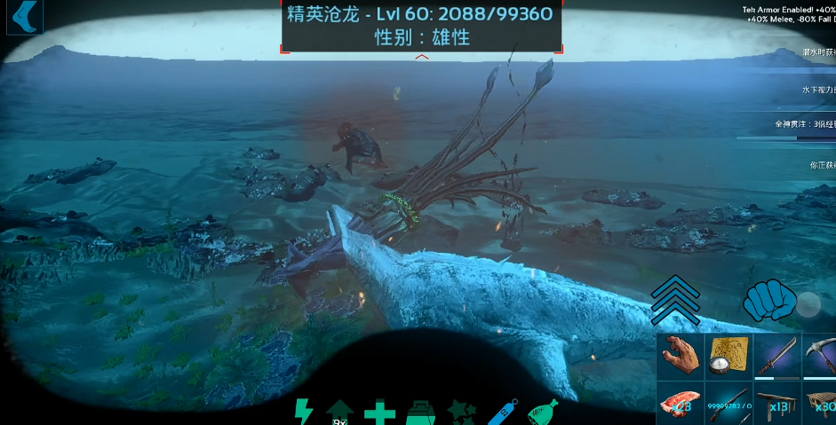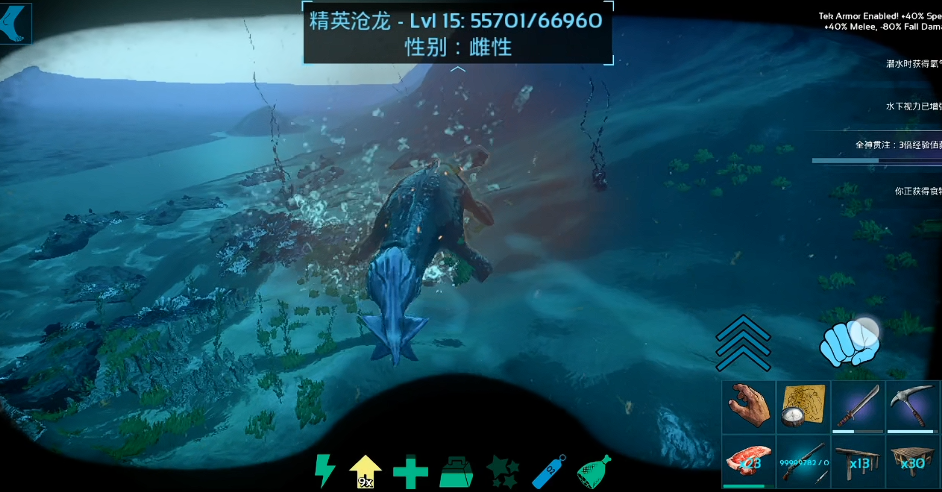 驯服沧龙需要提前准备大量麻醉箭或麻醉镖,它的眩晕值下降速度极快,建议携带静心膏和生物毒素。遇到目标后,优先攻击头部能更快积累眩晕值,但要注意保持距离,沧龙的撕咬范围比想象中广。如果条件允许,可以骑着鱼龙或巨齿鲨周旋,利用它们的灵活性与沧龙保持安全距离。沧龙刷新后如果长时间未被驯服或击杀,可能会消失并重新在其他点位生成。