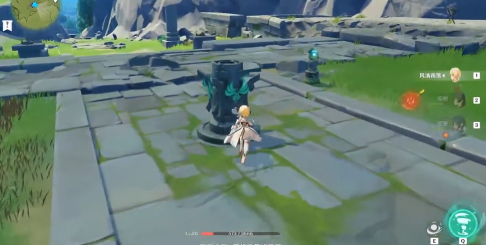 第三个风之灵被困在风墙内部,需要爬到风墙附近的柱子上,从高处落到中心区域并使用风元素攻击柱子来解除风墙。这个步骤需要特别注意角色选择,必须使用风元素角色才能激活柱子,其他属性无法生效。第四个风之灵隐藏得较为隐蔽,位于面向秘境大门右上角的悬崖底部,被大量石头覆盖。玩家需要来到左侧山脚下方,找到有多块集石的地点,用角色攻击打碎石头才能发现最后一个风之灵。