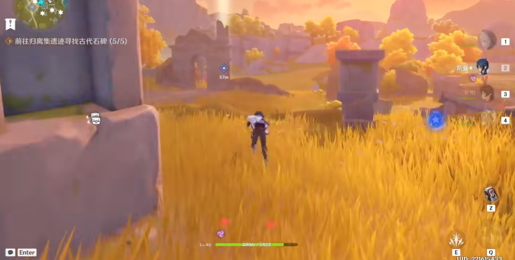 第二阶段需传送至望舒客栈与索拉雅对话,开启圆盘激活任务。四个圆盘呈环形分布在归离原遗迹外围,首个圆盘位置由任务标记,其余三个需自行探索。圆盘激活顺序无要求,但需注意每个圆盘周围有敌人守护,建议提前调整队伍配置。北侧圆盘需击败风史莱姆,西侧需对抗火深渊法师,南侧需处理雷萤术士,东侧圆盘则无战斗要求。