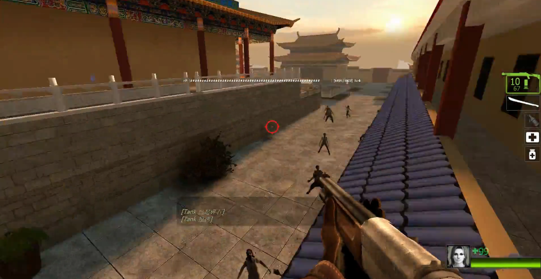 进入箭楼区域后视野会开阔很多,但危险也更多。屋顶和角落常藏着Hunter和Smoker,保持菱形队形前进,医疗兵走在中间随时救人。如果听到Tank的咆哮声,立刻退到直角拐弯处,近战贴墙输出,远程瞄准头部。这里建议留至少一枚土制炸弹,最后30米会遇到尸墙堵路,直接炸开冲过去。