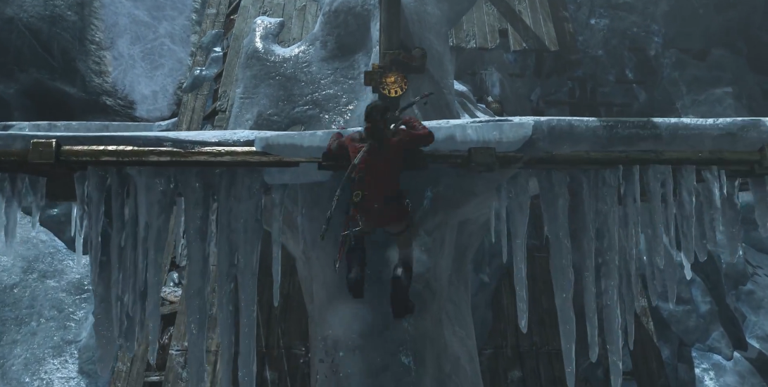 核心玩法围绕解谜与攀爬展开,需利用环境机关破解冰封障碍。开局沿冰壁滑下后,先不要前进,回头攀爬左侧冰壁可拾取卷轴遗物。潜水通过淹没通道时,注意按住潜水键穿越矮拱门,并在第二个拱门处上岸激活营地。本关关键场景是一艘冰封战舰,需通过桅杆滑轮机关改变重物位置撞碎冰壁。