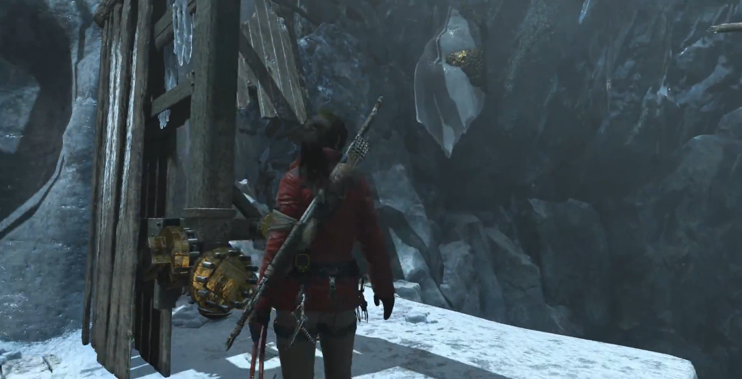 首先爬上中央桅杆转动滑轮,降下右侧重物;随后跳上重物撞碎右侧冰壁。接着沿墙壁找到左侧机关,快速攀爬至桅杆顶端,在重物回升前跳跃至重物上,借此撞碎左侧冰壁。两次撞击后,新通路开启,可进入宝库获取技能双箭齐发及区域地图。宝库内的资源需全部收集,为后续战斗提供保障。