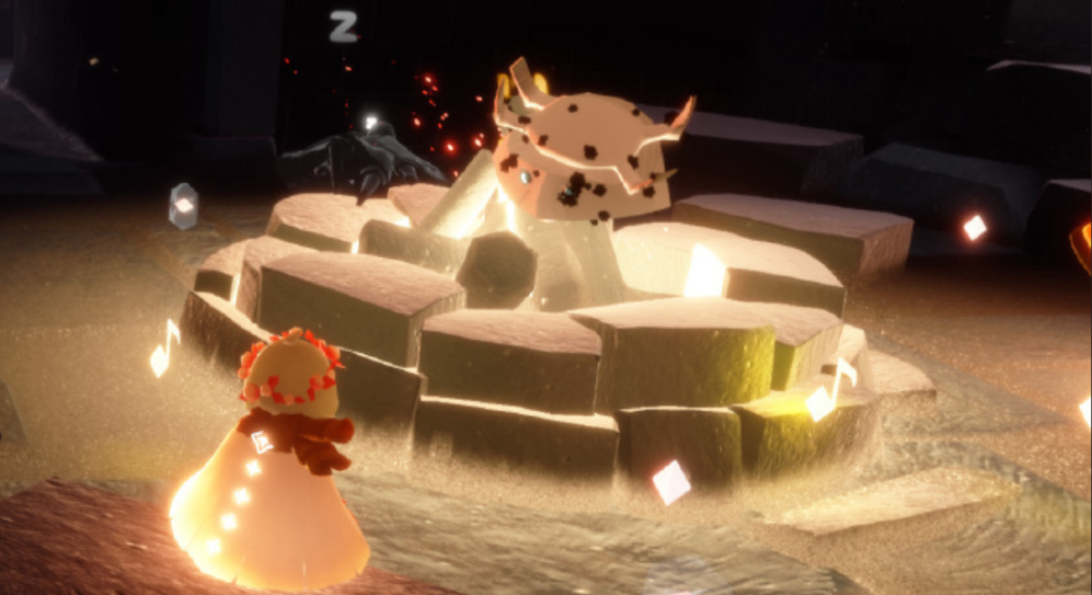 在圣岛地图中找到烤螃蟹的位置并不难,可以先传送到暮土地图,然后往四龙图方向飞。看到黄色凹坑后继续往右走,遇到滑坡直接跳下去,就能发现一堆螃蟹和圆石头旁的点火图标。这里就是烤螃蟹的互动区域啦,点击焚烧标志就能点亮烧烤架,整个过程不需要额外操作,架子上自带的竹签穿着三只螃蟹的模型会开始冒火,特别有趣。