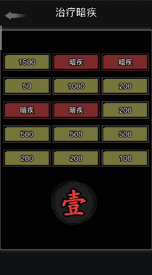 在放置江湖中遇到经脉暗疾时,别急着继续冲穴,先点治疗按钮进入小游戏界面。这里会出现一个带数字和暗疾标记的表格,咱们的目标是在五步内让分数超过3000分,但千万要避开暗疾格子。记住1500、1000、500这些高分牌的位置,开局直接点它们,最后补个200分的牌就能轻松过关。