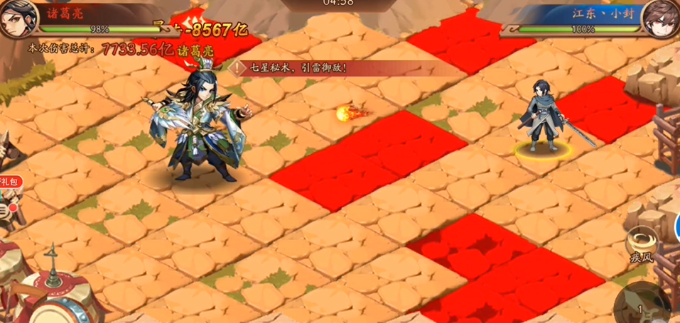 真正进入战斗后,光有好的阵容还不够,操作上也得注意。BOSS在放技能前,地面上通常会有红色的区域预警提示,你得及时操控你的武将躲开这些范围攻击。有些BOSS的技能是追踪型的,会一直追着你打,这时候你就得拉着武将持续移动来躲;还有些是扇形的范围攻击,你需要快速跑出那个危险区域。游戏里有时候会给你提供疾风这样的增益效果,能让你瞬移一下,好好利用这个效果既能躲技能,也能找机会反击BOSS。如果遇到那种会召唤小怪的BOSS,记得要先点击小怪的形象切换攻击目标,把帮手清理掉再集中火力打主目标,不然会打得很吃力。