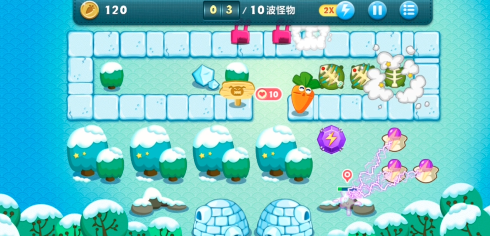 保卫萝卜冬季第20关作为该主题的最后一关,其难度有一定提升,特别是想达成道具全清和金萝卜的双重目标时,需要一些策略和耐心。开局时通常会有1200左右的金币,炮塔的选择和摆放位置是成功的关键。不少尝试发现,使用多种炮塔混合搭配有时效果并不理想,例如混合使用蘑菇、魔法球和火箭可能无法完美通关,反而集中资源发展一种特定类型的炮塔,可能会收获奇效,这需要玩家根据关卡地形和怪物波数进行细致调整。