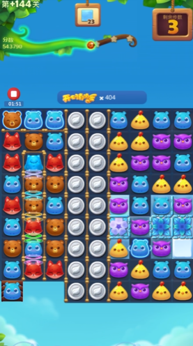 右侧空间打开后,动物们开始哗啦啦地往下掉,这时候很容易出现连锁反应,连消爆分的机会可就来了。咱们继续组合鸟加特效,或者制造直线特效、爆炸特效,尽量从上往下打,这样能更有效地清除那些厚厚的雪块通道。如果遇到卡壳的情况,可以稍微刷新一下局面,但步数得省着点用,因为前期多积攒特殊糖果,后期有针对性地使用,过关才会更轻松。玩的时候多注意整体布局,别光盯着一个地方消,有时候看似普通的消除也能引发意想不到的连锁效果哦。