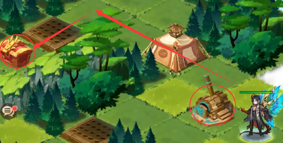 进入关卡后,我们首先会看到起点附近有机关。第一步是直接沿着地图边缘探索,你会遇到第一个宝箱,拿到后继续前进,沿途的帐篷记得顺手摧毁。接着你会遇到第二个宝箱,但它旁边可能有尖刺陷阱阻挡,这时你需要返回起点附近,操作那个机关来关闭这个陷阱,然后折返去开启它。要前往地图右下角寻找一个叫百姓的NPC对话,这个对话会触发关键剧情,让地图最上方原本被树林挡住的地方出现一条新路。完成这一步后,再掉头去地图最下方角落,找到村长这个NPC进行对话,对话结束后,第三个宝箱就会出现并可以拾取了。