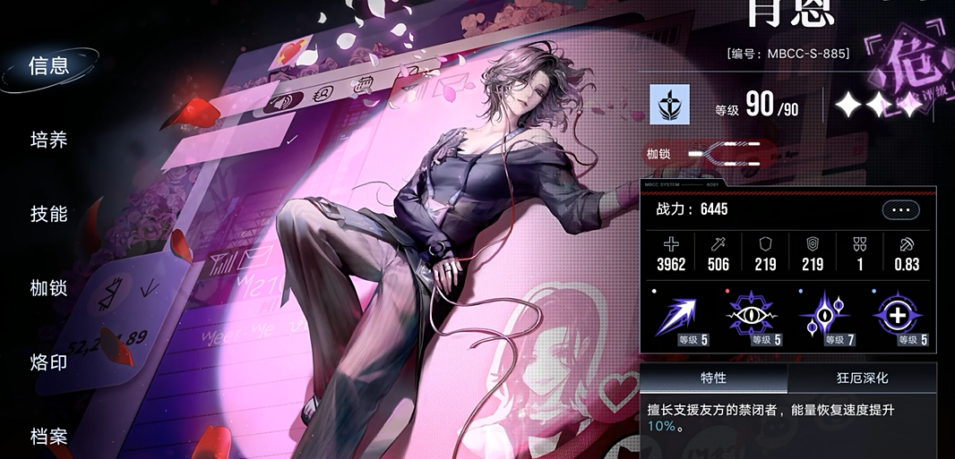 肖恩的回血能力主要来源于他的被动技能爱的慰藉,该技能在友方禁闭者被附加破绽标记时触发,为整个团队提供生命值恢复。爱的慰藉技能生效时,肖恩会令所有友方禁闭者回复自身攻击一定比例的生命值,回复量直接取决于肖恩的攻击属性,因此提升他的攻击力可以增强治疗效果;这个效果存在触发间隔,意味着回血并非连续不断,需要玩家注意技能冷却时间以避免在关键时刻无法生效。