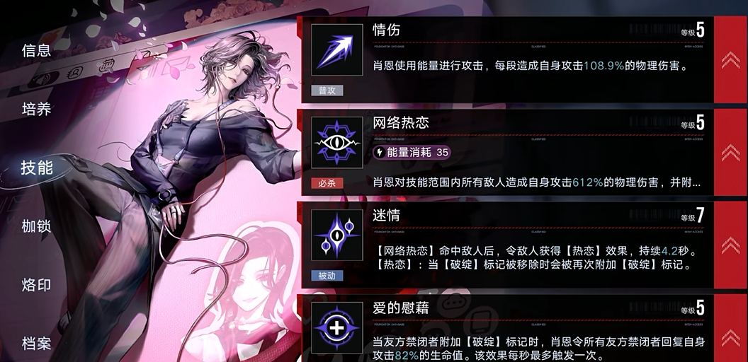 回血的触发依赖于破绽标记的附加,肖恩的必杀技能网络热恋可以对范围内所有敌人造成伤害并附加破绽标记,从而间接激活回血机制;他的专属烙印爱意诳语能定期对场上敌人附加破绽标记,进一步增加了回血机会,但每场战斗只能使用两次,需合理规划使用时机。