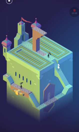 关卡推进,建筑的整体结构可能会发生更大的变幻与旋转。玩家需要操作新的把手,有时是为了清除道路中央的乌鸦人,有时则是为了使分散的建筑模块对接,形成一条完整的通道。在整个过程中,保持对乌鸦人巡逻规律的警觉至关重要,需要等待其走到特定路段时再操作机关,以便将其引导至凹槽或下层,从而彻底扫清艾达前进的障碍。耐心观察与适时操作是顺利通过这些分段场景的要诀。关卡的尾声部分,玩家通常需要将之前掌握的技巧综合运用。在最后的场景里,可能仍需通过不断旋转带圆钮的墙壁来最终连通所有道路。当道路被正确拼接后,艾达便能沿路径直行,爬上最后出现的爬梯,并最终走向标志着关卡完成的终点。