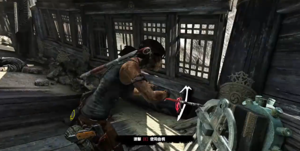 登基大殿区域的谜题需要玩家操作两个关键机关,分别控制风口的开关和木板平台的高度。玩家需要走到左侧,操作开关将上下两个窗户全部关闭,以阻断风力。返回平台附近的曲柄机关处等待,必须等到最下方的风口被强风吹开的瞬间,迅速转动曲柄将木板平台升高。紧接着,抓住时机跳上平台,此时上方的风口也会被吹开,产生的强风会将劳拉连同平台一起吹向高处。玩家需立刻跳向对面的墙壁并攀附住横梁,沿着既定路径前进即可通过此区域。操作的核心在于关闭风口与升高平台的时机必须严格对应风力涌入的瞬间,过早或过晚都会导致失败。