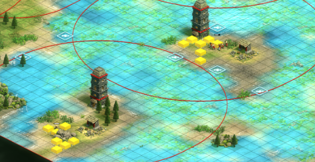 进入中期阶段需要平衡资源分配与军事扩张。黄金采集需保持稳定,用于持续生产僧侣,僧侣可以招降敌方极具威胁的炮舰或火枪手。陆地军事建设应以训练鹰勇士和豹勇士组成混合编队为主,利用其高机动性骚扰敌方资源点。在此期间,应在关键资源点或通往基地的要道上建造城堡或箭塔进行防守,并组建多兵种混合部队以应对不同类型的敌人。