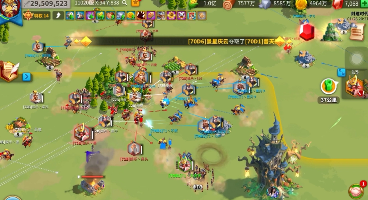 迁城与卡位是进阶刷田技巧,将主城迁到高级田密集区域,缩短部队行军距离,减少往返时间,提升单位时间内采集次数。在资源刷新节点提前部署部队,锁定即将刷新的点位,抢占先机。同时合理利用屯田道具与资源增益效果,在高级田密集时段开启增益,进一步放大收益。避免在交战频繁区域刷田,防止部队被突袭导致采集中断,优先选择联盟腹地、相对安全的区域长期驻守刷田,保障采集过程稳定安全。