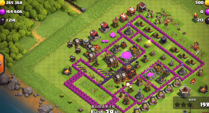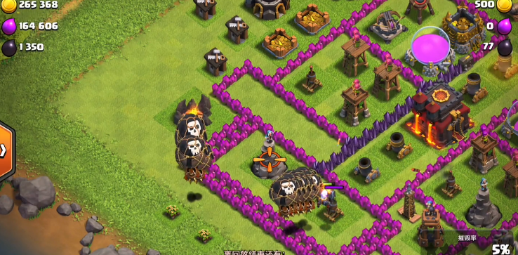 常规发展阶段建议将大本营置于阵型最中心,用多层城墙环绕包裹,内侧搭配地狱塔、连弩、天鹰火炮等高伤害防御建筑,形成密集火力网,外侧布置资源建筑与普通防御作为缓冲,这种布局能大幅提升敌军突破难度,避免核心建筑被快速摧毁。追求奖杯段位时,中心护本阵型更为关键,配合部落城堡居中放置,让敌方难以轻松引出援兵,同时分散布置防空火箭与陷阱,兼顾陆军与空军进攻,确保大本营在多方向进攻下都能持续受到防御覆盖,减少被三星的概率。