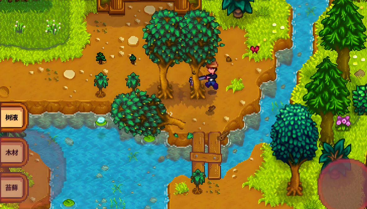 砍伐树木获取木材,用于制作储物箱或升级工具;敲碎石头收集石材,为未来的建筑和工具升级做准备。如果体力允许,可以探索农场周围的区域,采集野生的春季洋葱或其他可觅食物品,这些既能补充体力也能出售换钱。