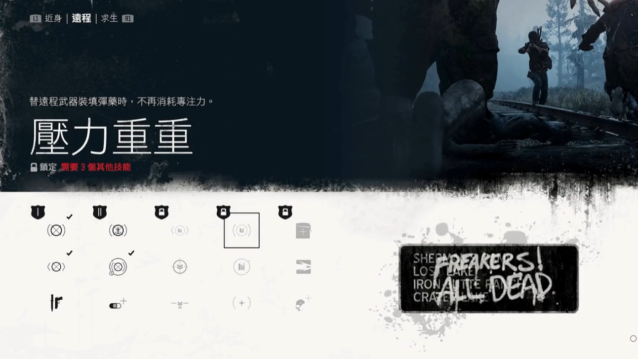 暴走潮活动区域通常存在油罐、天然气管道等可引爆设施,通过射击这些设施可一次性消灭大量敌人。狭窄地形如矿洞或隧道能限制尸潮包围速度,玩家可在此类区域布置遥控炸弹或感应地雷。燃烧弹和烧夷弹对密集尸群效果显著,但需确保投掷前拉开足够距离,避免被冲锋的丧尸打断动作。优先提升体力上限和恢复速度,确保长时间奔跑不被尸潮追上;专注技能延长子弹时间效果,便于精准射击爆炸物或爆头。若采用潜行流,可搭配暗杀大型感染者的技能,但该策略仅适用于小型尸潮。
