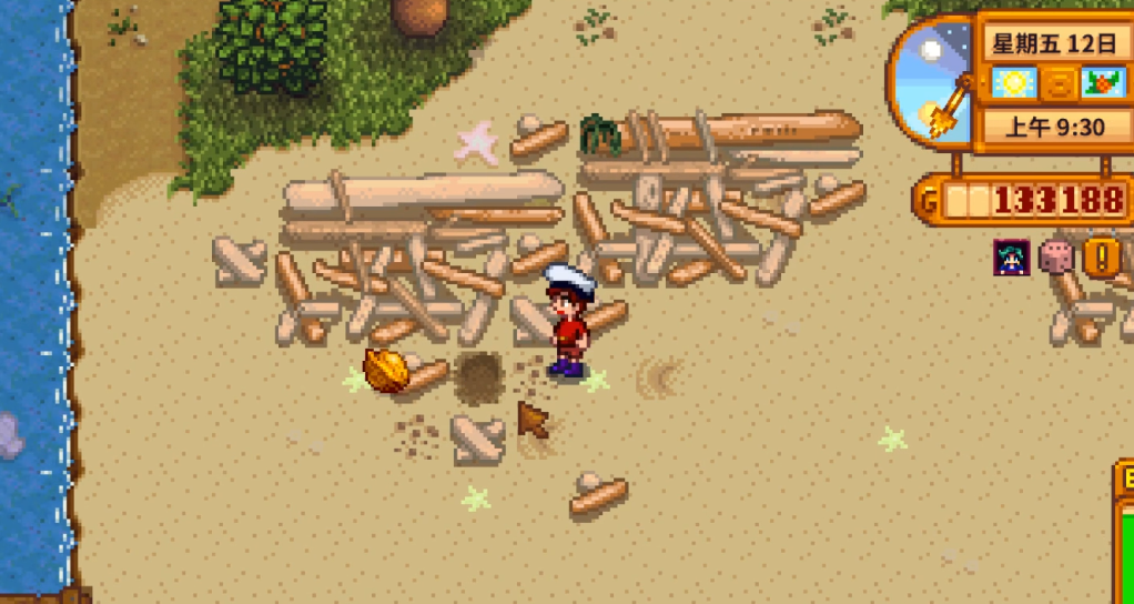 进入姜岛西部后,玩家可以探索多个地点,包括海滩、沉船、史莱姆小岛和隐藏通道等。海滩区域分布着多个可挖掘的金核桃,部分需要根据日记残页的线索才能找到。沉船内部藏有一个金核桃,而史莱姆小岛则需要击杀特定史莱姆或砍伐树木才能获取隐藏的金核桃。珊瑚区的水晶洞内有一个记忆小游戏,完成五轮挑战后可获得3个金核桃。