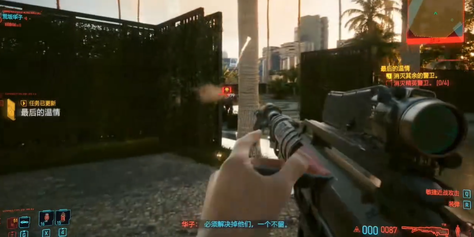 任务最后的温情中有个特殊机制需要注意。当咱们抵达荒坂华子所卧室区域时,系统会自动跳过战斗进入对话环节。在此之前清理警卫要讲究效率,建议装备智能武器配合弹跳辅助义体,从高处快速消灭地面目标。若触发警报也不必慌张,躲在集装箱或通风管后等待通缉倒计时结束,警卫的搜索AI有固定路径模式,掌握规律就能轻松周旋。
