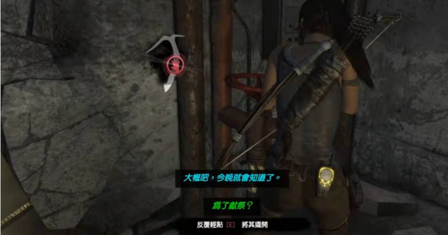 在铁笼固定后,对准目标位置射出绳索并固定,随后用火弓箭射击引爆毒气。爆炸会破坏封闭的门,毒气完全消散即可继续前进。需注意操作时序,若引爆过早可能导致路径未完全开启。过程中需反复利用求生本能(右摇杆按键)高亮显示可互动元素,例如绳索锚点与可燃毒气区域。此阶段对玩家反应速度有一定要求,建议提前规划移动路线。