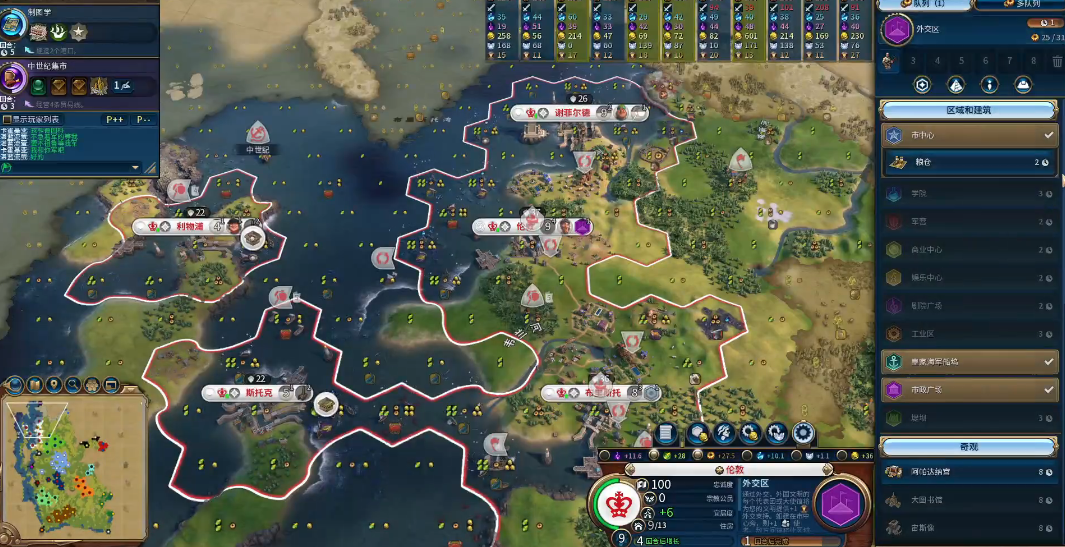 文化胜利方面,俄罗斯的拉夫拉修道院提供大量伟人点数,尤其是大作家、大艺术家和大音乐家。冻土地块的信仰加成可快速购买自然学者和摇滚乐队,后期通过旅游业绩压制对手。文化胜利需注重剧院广场的布局,合理分配巨作槽位,同时利用考古学家挖掘文物提升主题化加成。