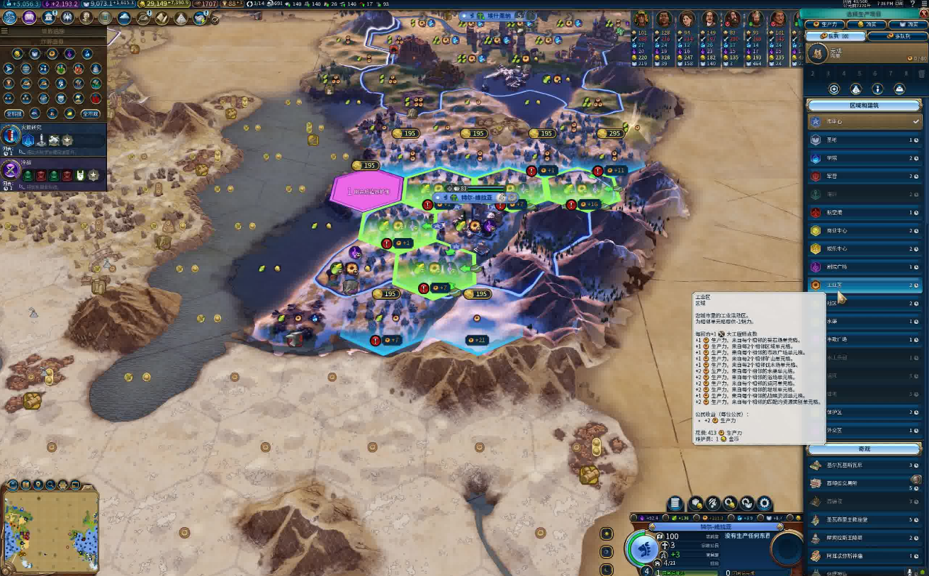 中期阶段咱们得把生产力集中到学院区建设上。每个城市至少要有图书馆和大学,核心城市要补全研究实验室。别忘了工业区也要同步发展,因为后期太空项目需要大量生产力支撑。如果遇到文化值不足的情况,可以适当补几个剧院广场,毕竟有些关键市政能解锁加速科技的政策卡。宗教和军事可以暂时放一放,但至少要保证有基础防御防止被偷袭。