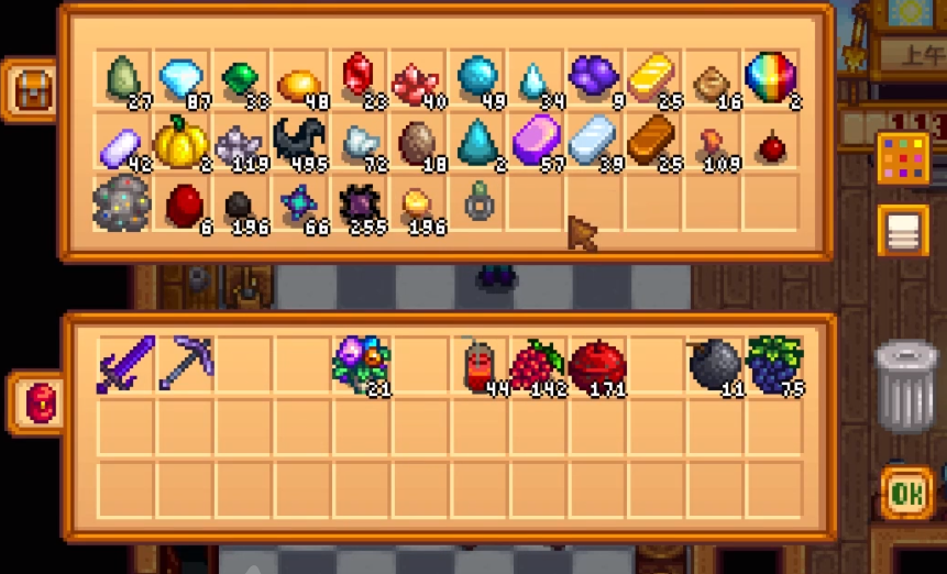 玩法机制上,SVE模组从farming、采集、钓鱼、战斗、建造等多维度丰富游戏内容,新增四十三种全新鱼类,分布在新地图的水域与原版特定区域,部分鱼类需特定天气、时间或完成任务解锁,钓鱼时还会遭遇怪物干扰提升挑战乐趣。种植方面加入十多种新作物,如金胡萝卜、姜果、特色草药等,部分作物有特殊种植条件,姜果等需选择乔家路线才能种植。养殖系统解锁骆驼、熊等新动物,需建造顶级鸡舍与畜棚解锁,建筑自带自动采集、加热与抚摸功能。战斗方面新增多种强力怪物与专属BOSS,掉落稀有材料与装备,还能解锁新的战斗配方与药剂。同时模组新增大量制作配方、家具、服装与音乐,让游戏的收集与养成玩法更具深度。